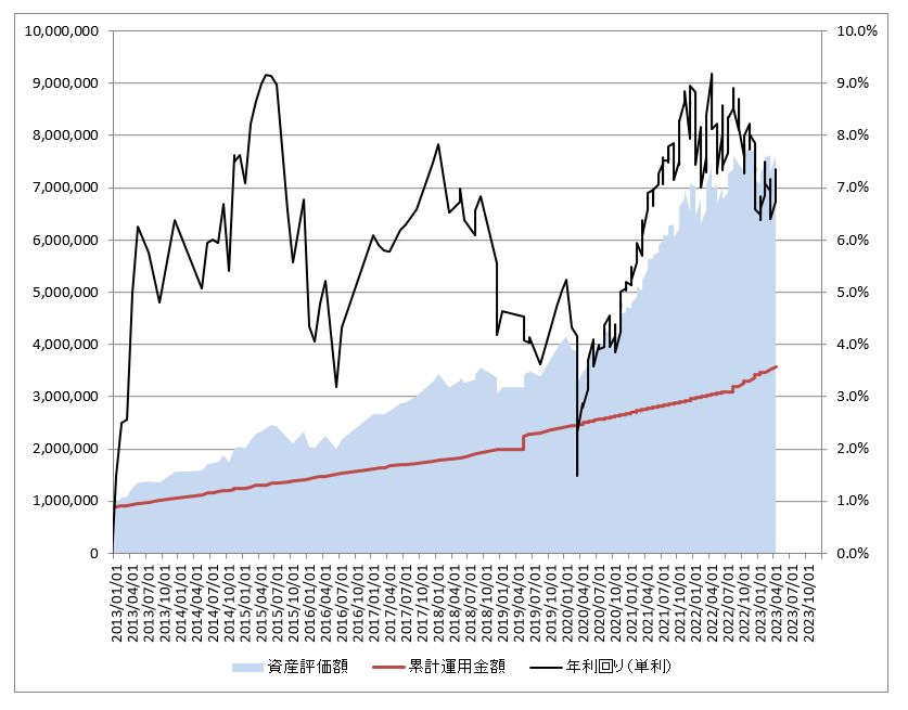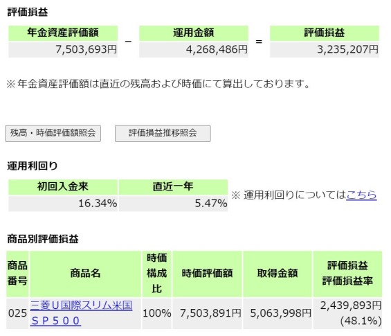 老後への資産運用:iDeCo投資の運用結果(累計評価損益:+4,438,549円 / 2023年4月22日(土))