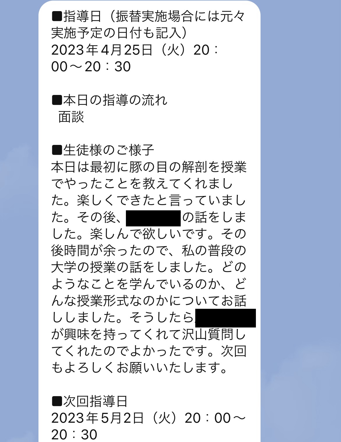 スタディコーチ:娘の鉄緑会指定校出身コーチ「カルテ」(2023年4月25日(火))
