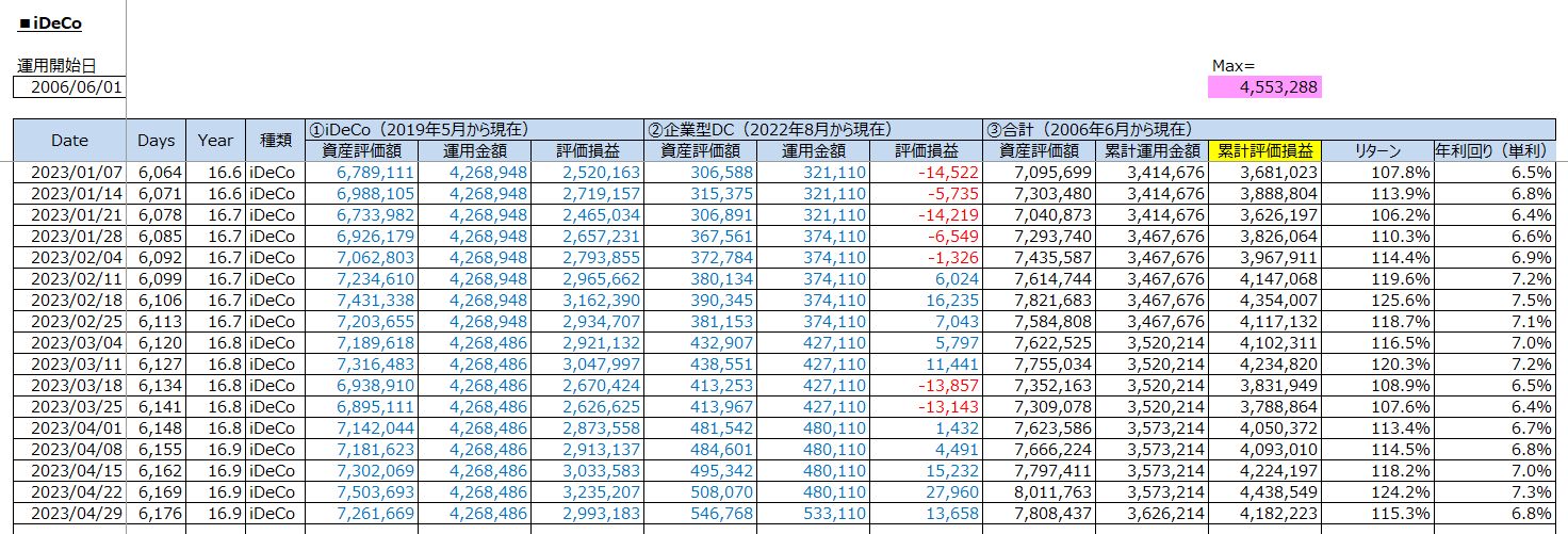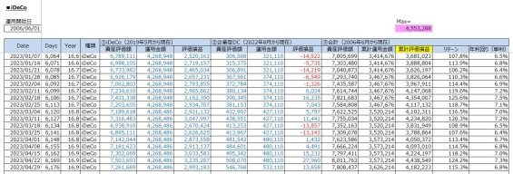 老後への資産運用:iDeCo投資の運用結果(累計評価損益:+4,182,223円 / 2023年4月29日(土))