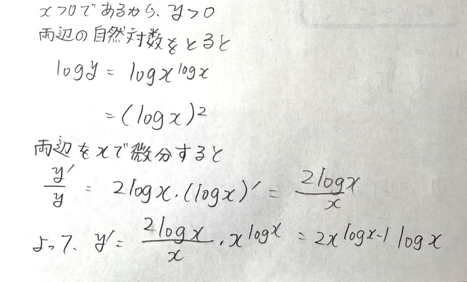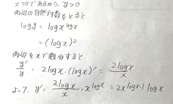 昨日娘が対応した、公文数学N174「対数関数・指数関数の微分」(数III)の1枚。