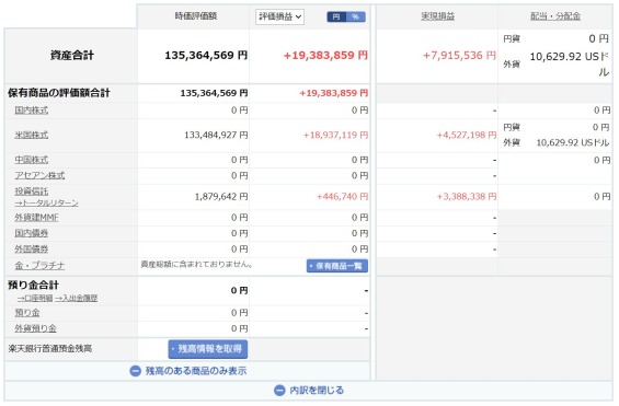 (3)評価損益/税前:+28,798,688円(※利益確定分と未確定分が混ざっている)