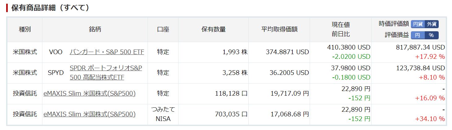 ・VOO 2,139株 x USD 1.4692/Q = USD 3,142.61, x (1-28.282%) = 税後Cash USD 2,253.80, @144, 税後Cash 324,547円