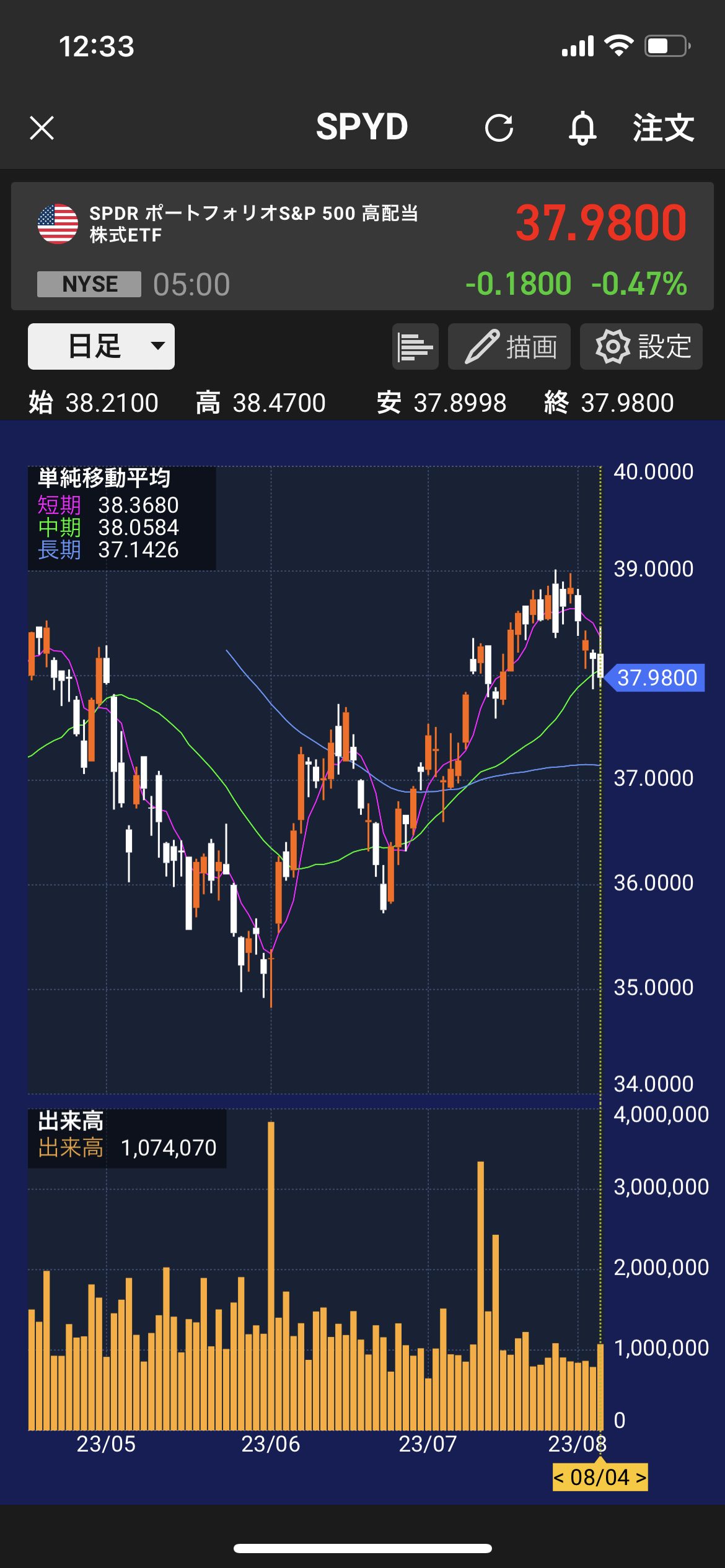②SPYD:3,258株(※娘が2023年5月16日に1,000万円、6月12日からは1,600万円を運用)