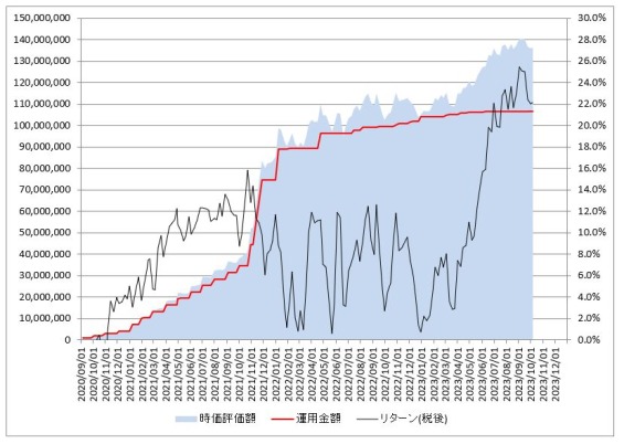 鉄緑会への資産運用:S&P500投資の運用結果(評価損益/税後:+23,588,444円 / 2023年10月7日(土))