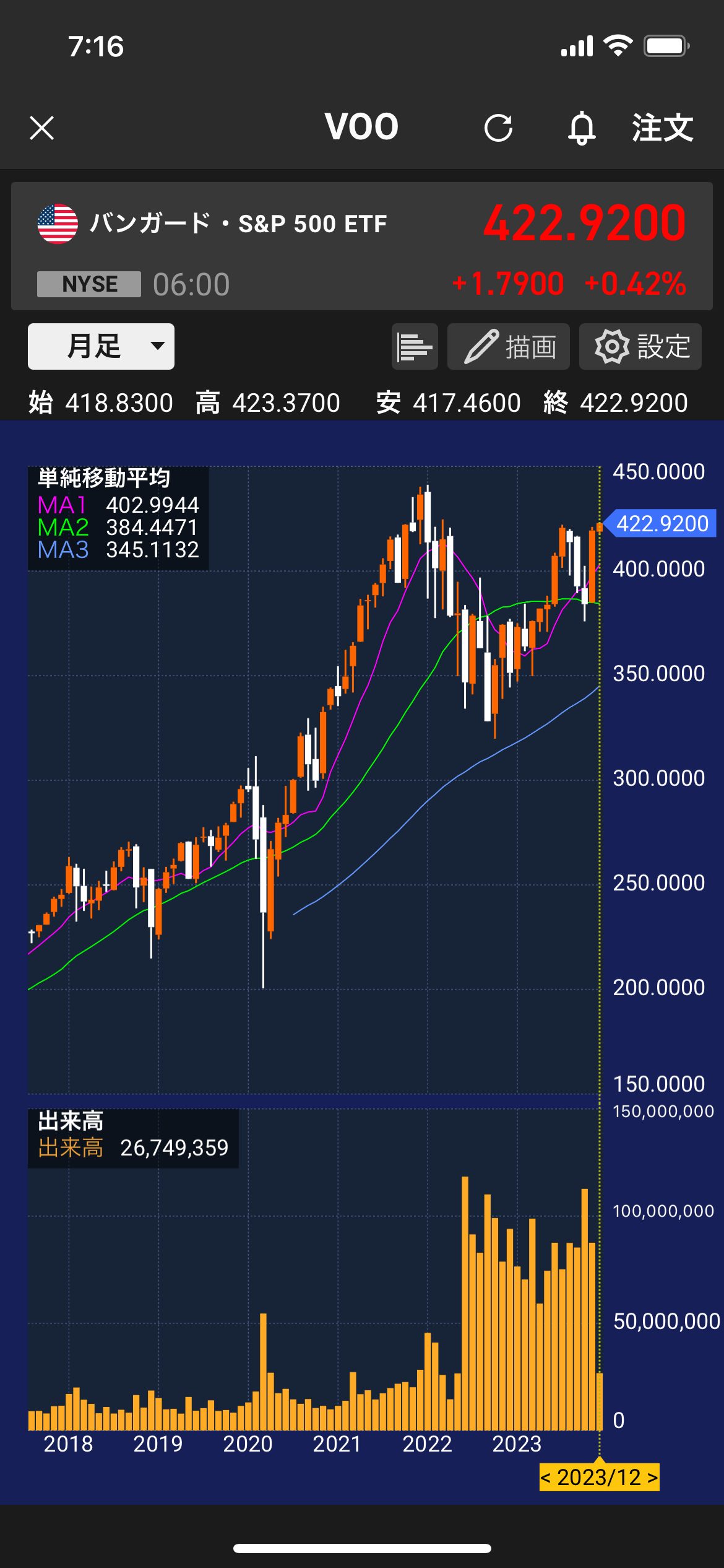 ・・・「日銀の植田和男総裁が7日の国会で「年末から来年にかけて一段とチャレンジングになる」と語ったことなどが、早期の金融緩和の正常化を巡る観測に火をつけた」。まあ、こういうことで、一気に円高になりましたので、VOO追加投資を100万円ほど実施しました。