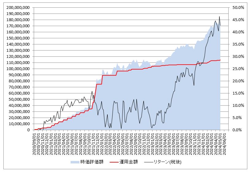 ②累計運用金額:114,550,197円(※入金額 – 出金額)