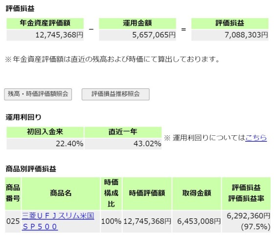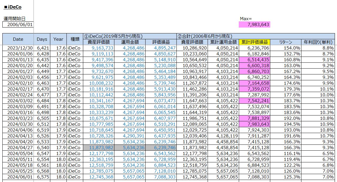 老後への資産運用:iDeCo投資の運用結果(累計評価損益:+7,088,303円 / 2024年6月1日(土))