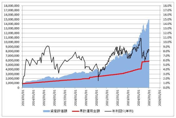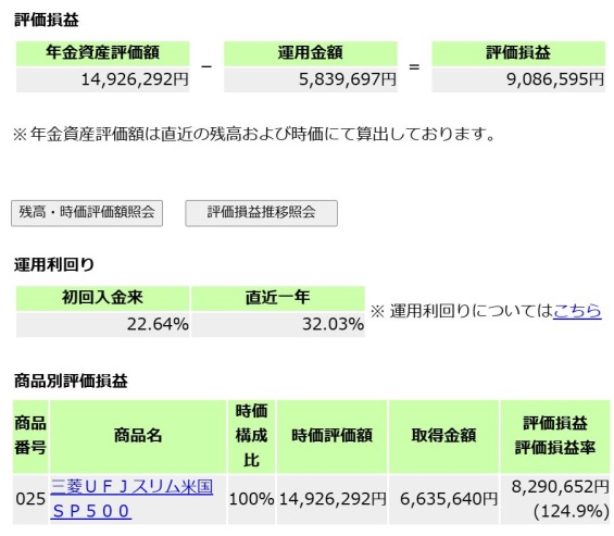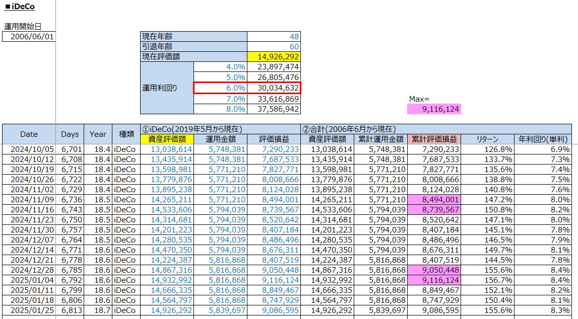 老後への資産運用:iDeCo投資の運用結果(累計評価損益:+9,086,595円 / 2025年1月25日(土))