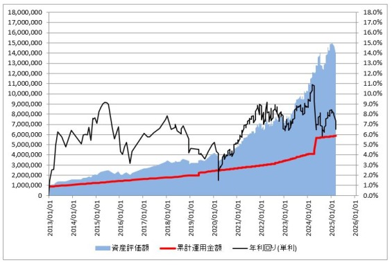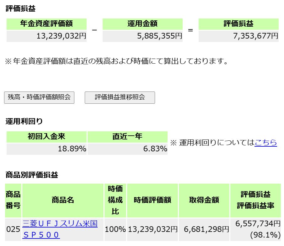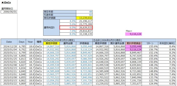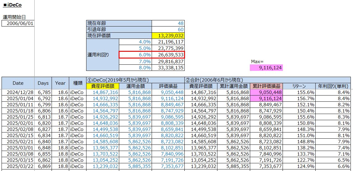 老後への資産運用:iDeCo投資の運用結果(累計評価損益:+7,353,677円 / 2025年3月22日(土))