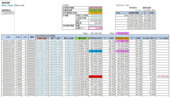 鉄緑会への資産運用:S&P500投資の運用結果(評価損益/税後:+57,045,747円 / 2025年5月24日(土))