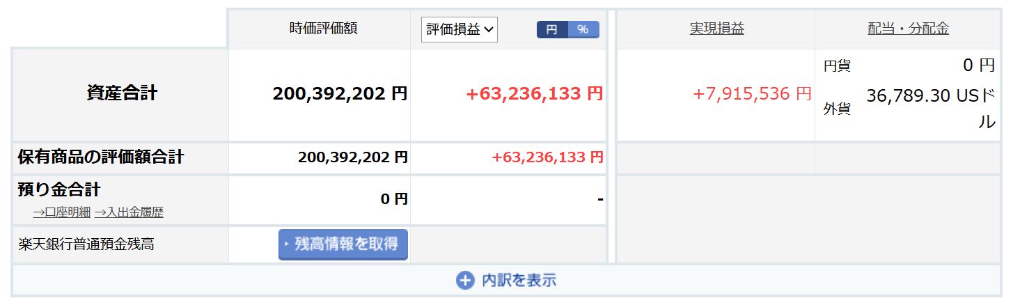 ③評価損益/税前:+76,910,836円(※利益確定分と未確定分が混ざっている)