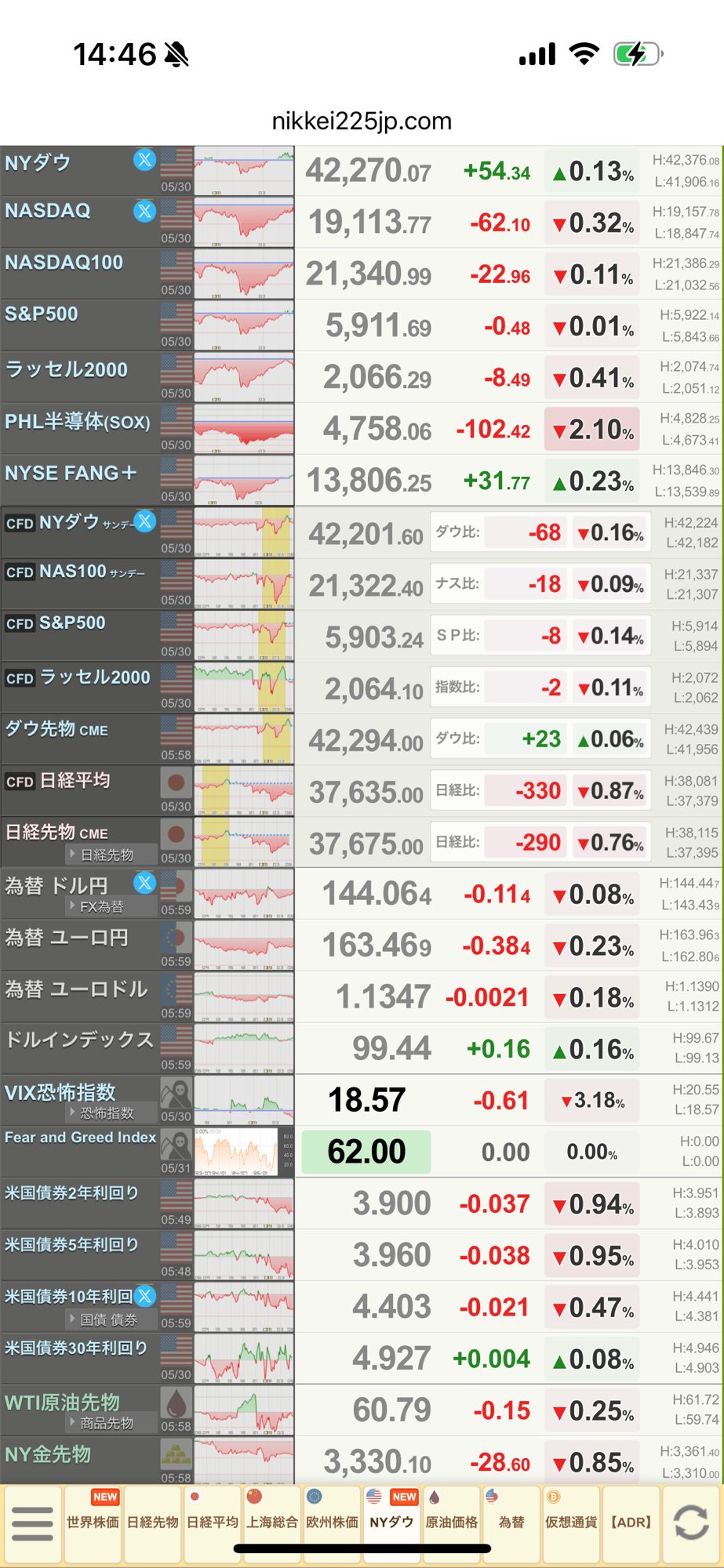 ④米国債30年利回り:4.920%→5.031%→4.927%