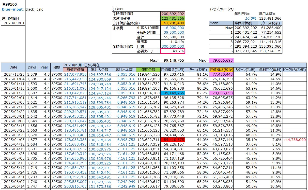 ・2024年04月05日:鉄緑会への資産運用:トランプ関税ショック後の週末 / S&P500投資の運用結果(評価損益/税後:+43,357,146円 / 2025年4月5日(土))