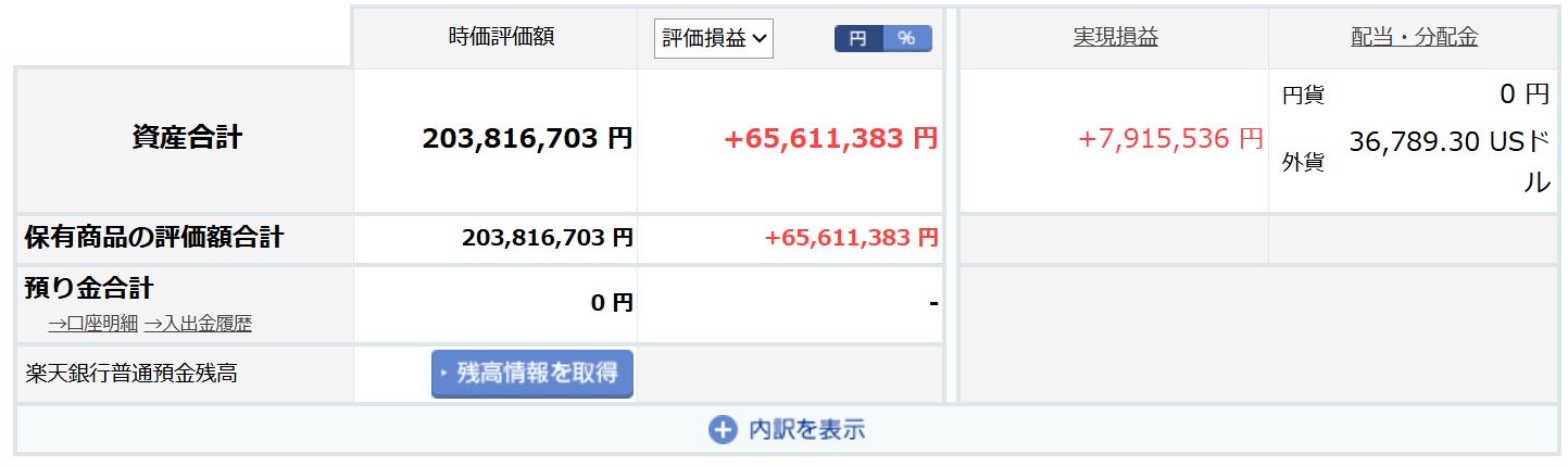 ③評価損益/税前:+79,386,086円(※利益確定分と未確定分が混ざっている)