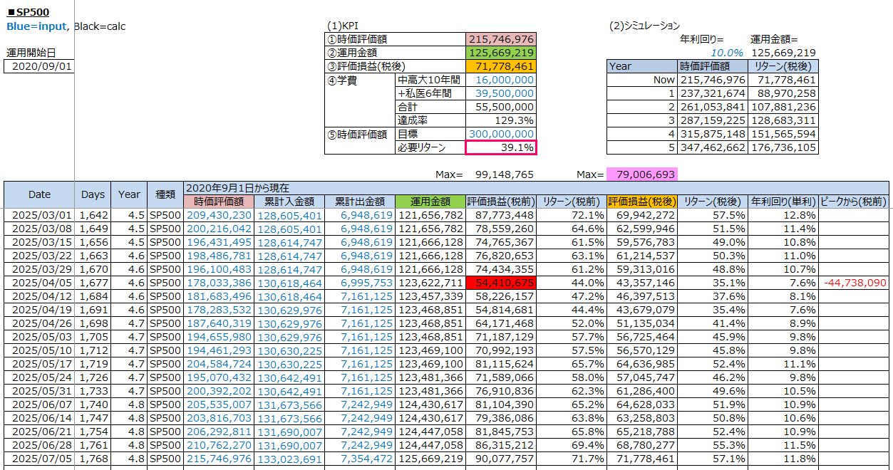 ・2024年04月05日:鉄緑会への資産運用:トランプ関税ショック後の週末 / S&P500投資の運用結果(評価損益/税後:+43,357,146円 / 2025年4月5日(土))
