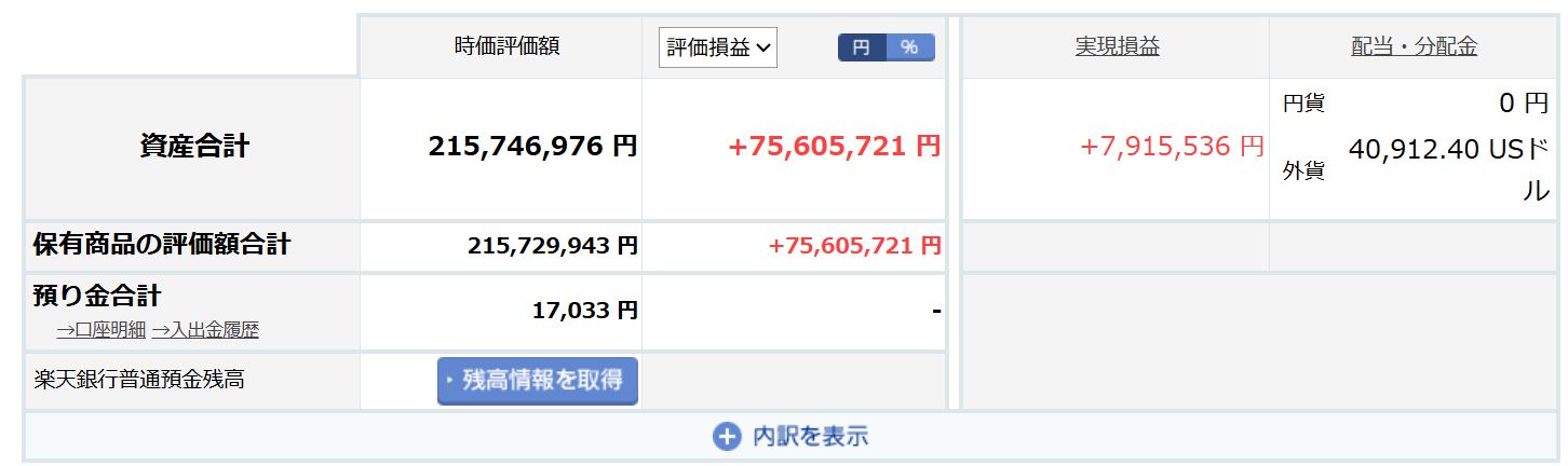 ③評価損益/税前:+90,077,757円(※利益確定分と未確定分が混ざっている)