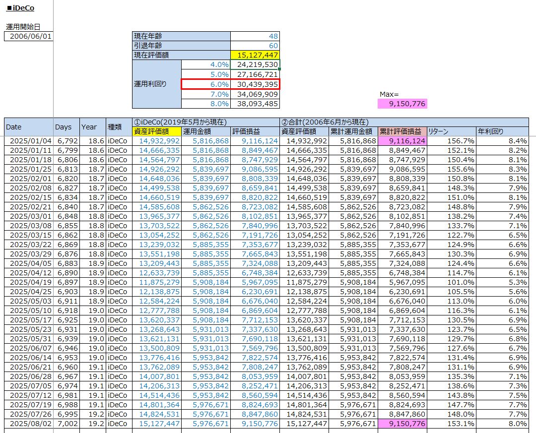 老後への資産運用:【過去最高益】iDeCo投資の運用結果(累計評価損益:+9,150,776円 / 2025年8月2日(土))