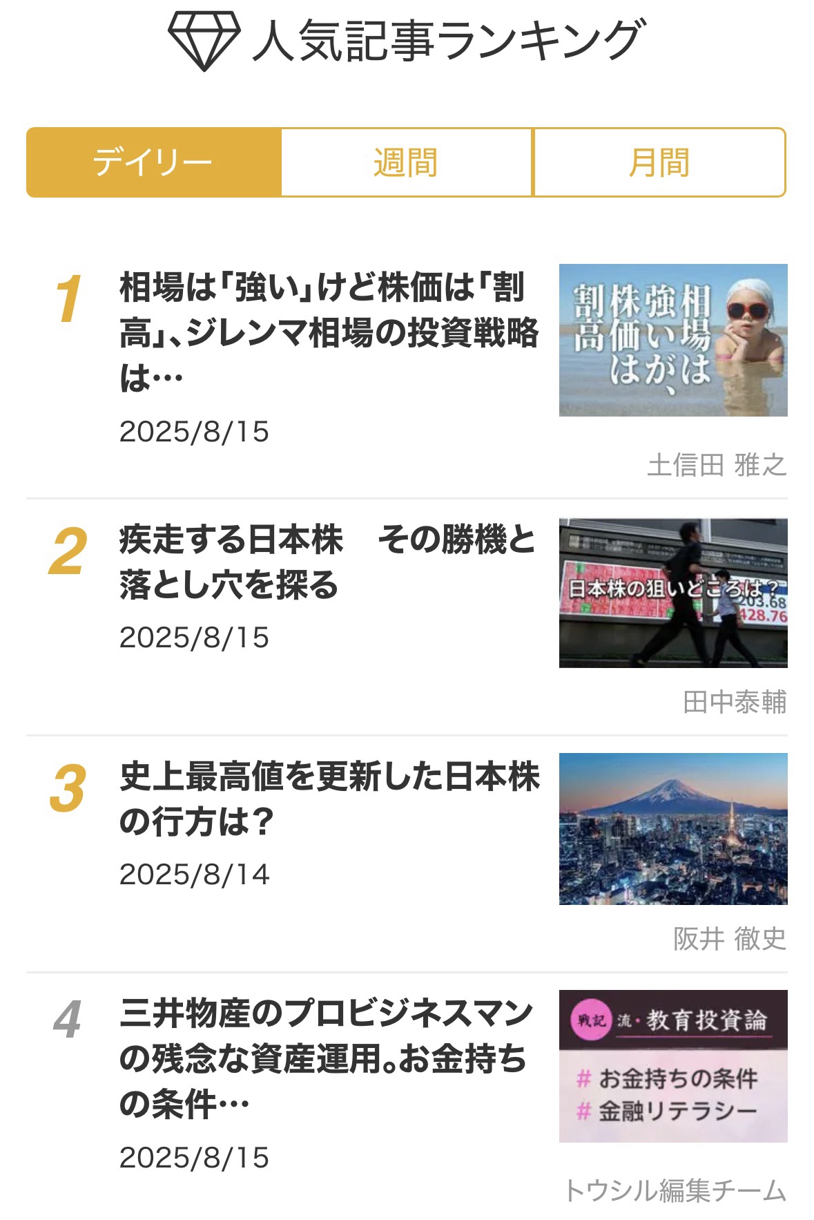 ・2025年8月15日:三井物産のプロビジネスマンの残念な資産運用。お金持ちの条件は、学歴でも職歴でもなく、「金融リテラシー」:戦記さん