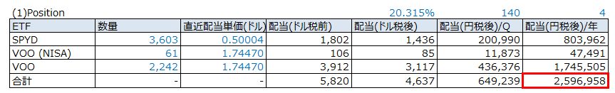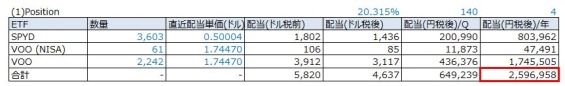 ⑧予想配当金(円税後):2,596,958円/年(@140円)