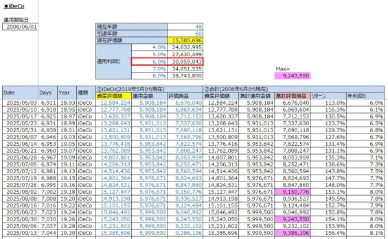 老後への資産運用:【過去最高益】iDeCo投資の運用結果(累計評価損益:+9,386,196円 / 2025年9月13日(土))