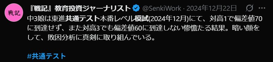 — 『戦記』教育投資ジャーナリスト (@SenkiWork) December 22, 2024