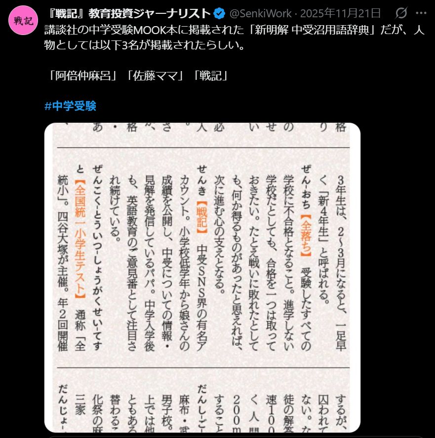 — 『戦記』教育投資ジャーナリスト (@SenkiWork) November 21, 2025