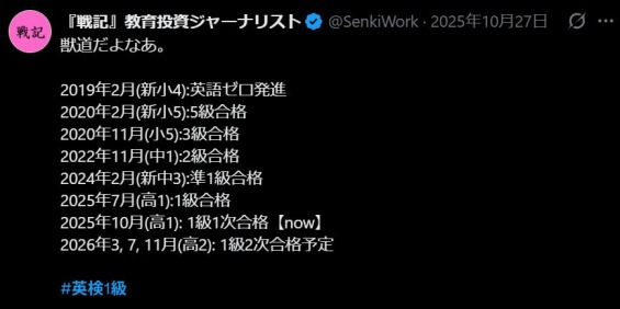 2025年10月(高1): 1級1次合格【now】