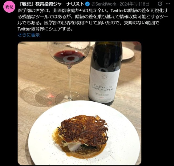 医学部の世界は、非医師家庭からは見え辛い。Twitterは階級の差を可視化する残酷なツールではあるが、階級の差を乗り越えて情報収集可能とするツールでもある。医学部の世界を取材させて頂いたので、支障のない範囲でTwitter教育界にシェアする。