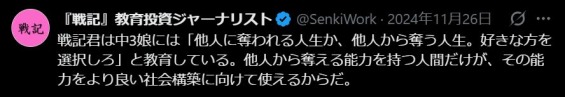 — 『戦記』教育投資ジャーナリスト (@SenkiWork) November 26, 2024