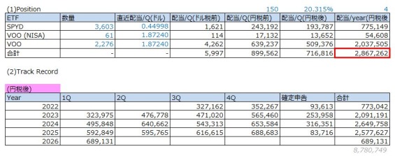 ⑧予想配当金(円税後):2,867,262円/年(@150円)