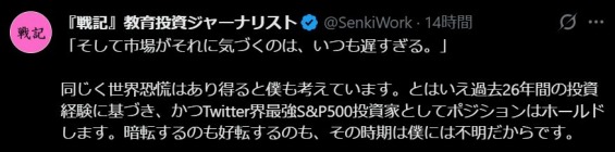 高2/Twitterの記録:「とはいえ過去26年間の投資経験に基づき、かつTwitter界最強S&P500投資家としてポジションはホールドします。」