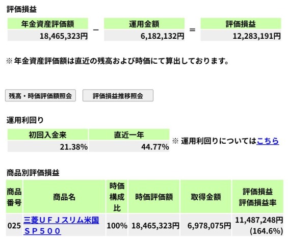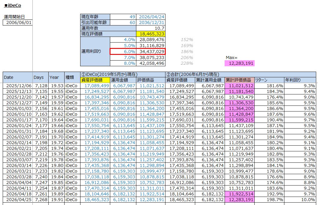 老後への資産運用:【過去最高益】iDeCo投資の運用結果(累計評価損益:+12,283,191円 / 2026年4月25日(土))