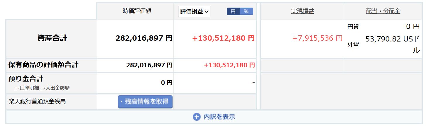 ②累計運用金額:134,137,555円(=入金額 – 出金額)